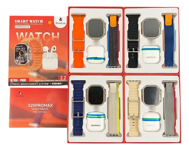 Combo Tech S20 Pro Max - Smartwatch Negro + Auriculares + Doble Malla